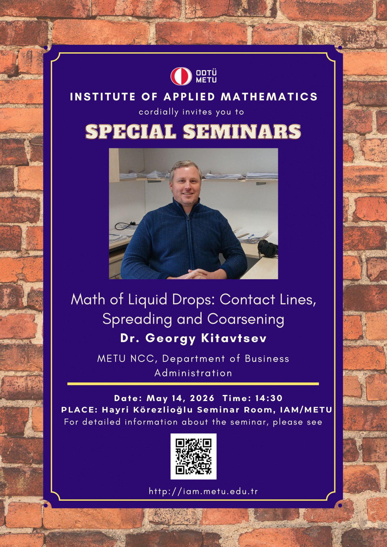 Place: Hayri Körezlioğlu Seminar Hall, IAM/METU