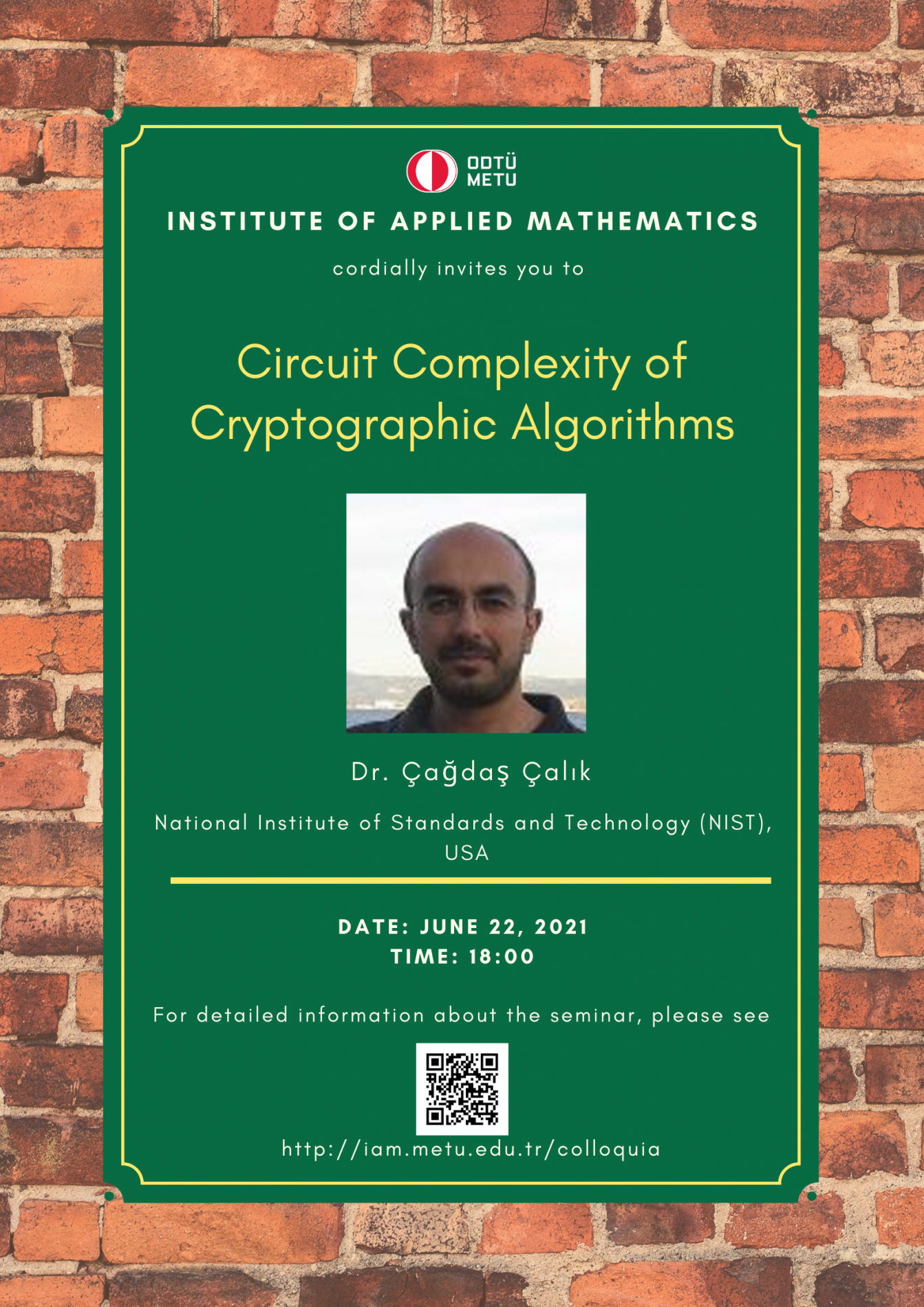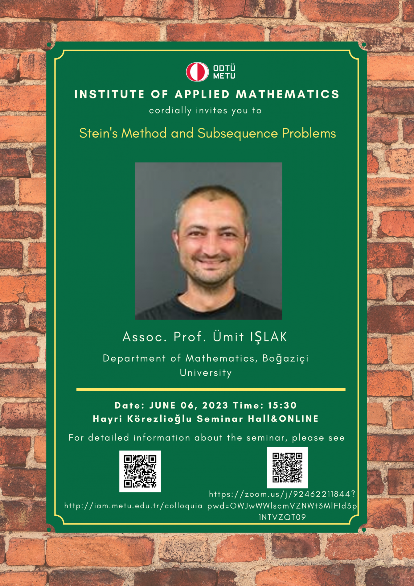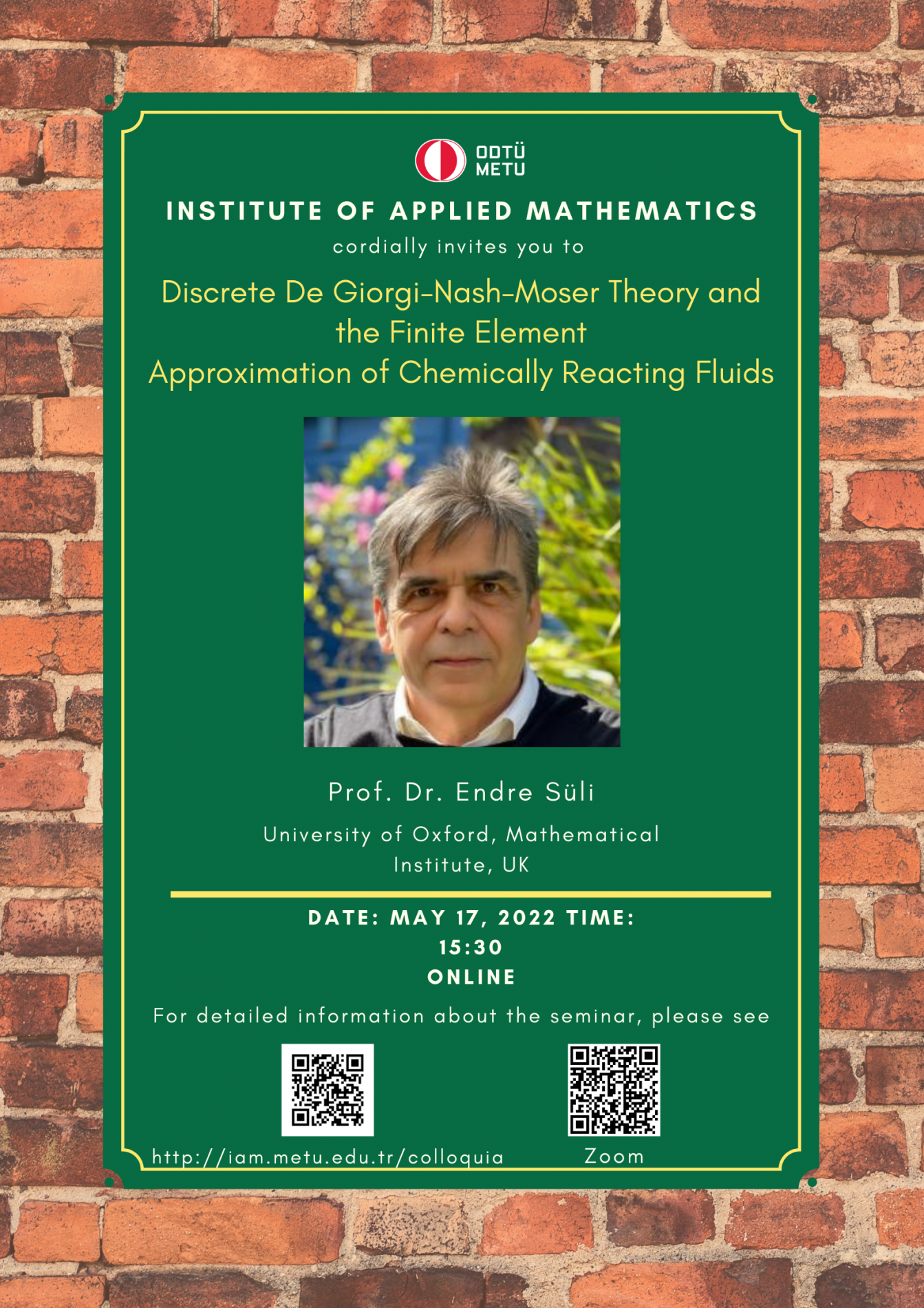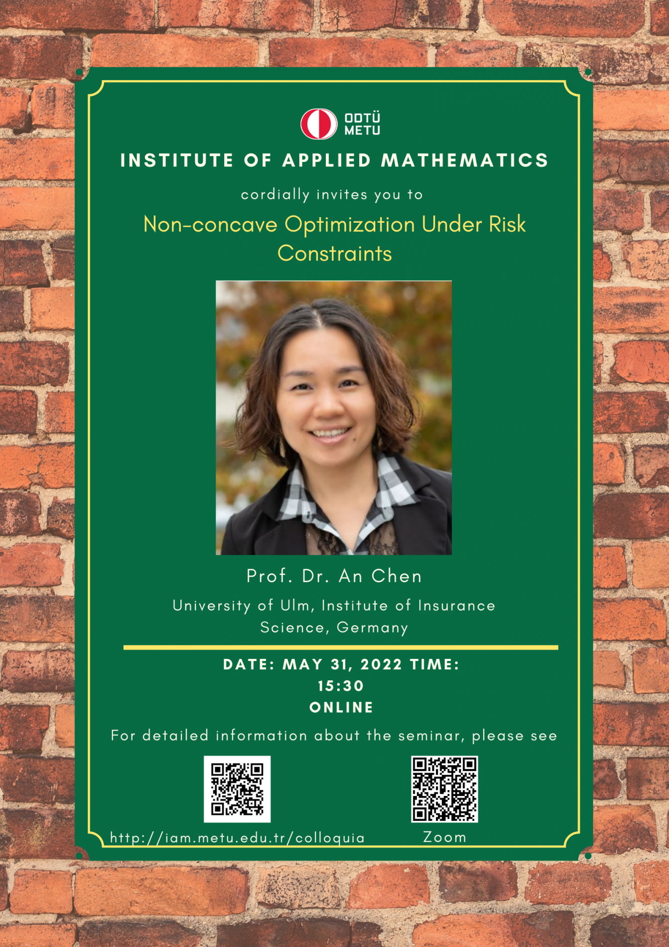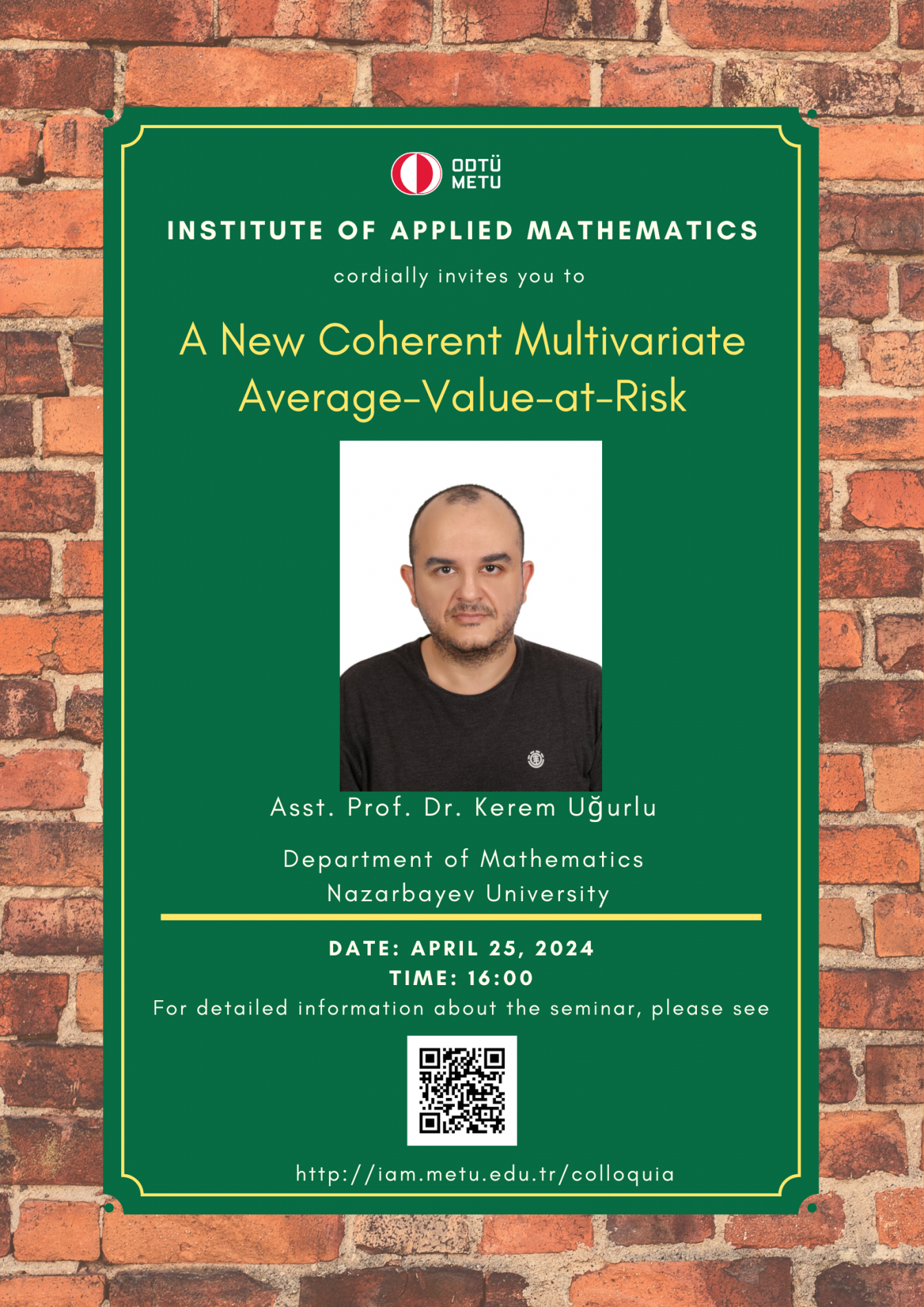 Institute of Applied Mathematics (IAM) is an interdisciplinary centre fostering various researches and teaching activities in mathematical sciences. In order to coordinate mathematics-based research as well as to undertake collaborative research with industry, IAM has established Colloquia (General Seminars), since its foundation in 2002, almost every Tuesdays in the afternoon. A colloquium at the institute usually lasts about 45 minutes.