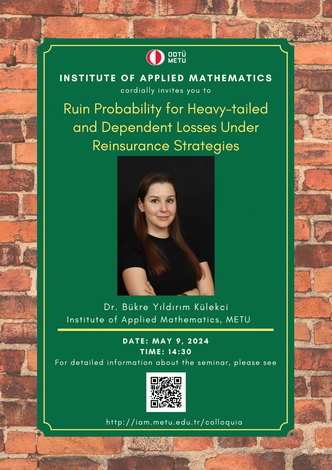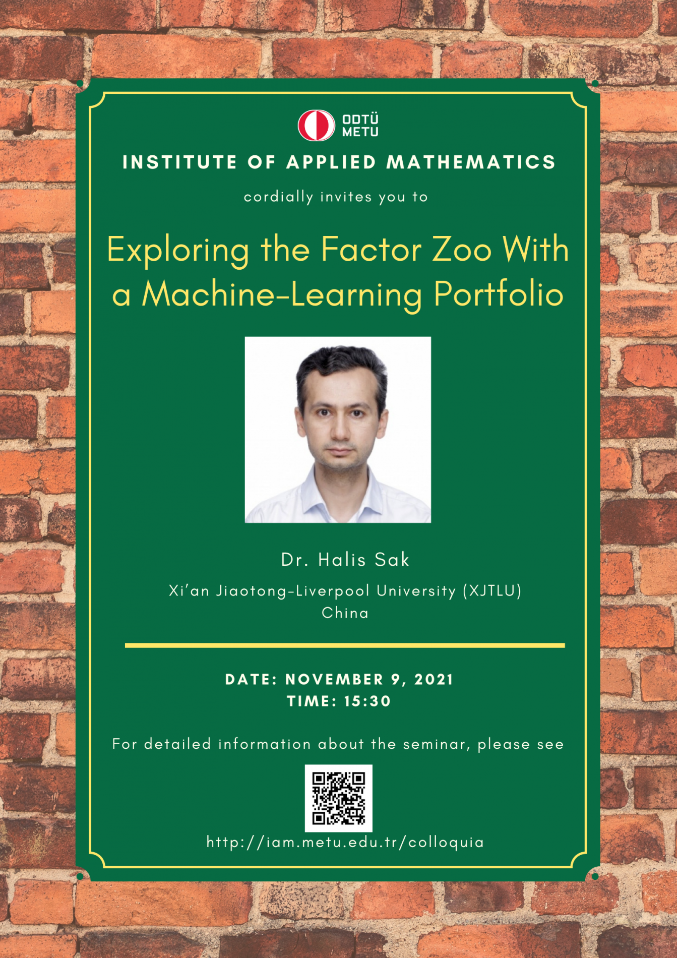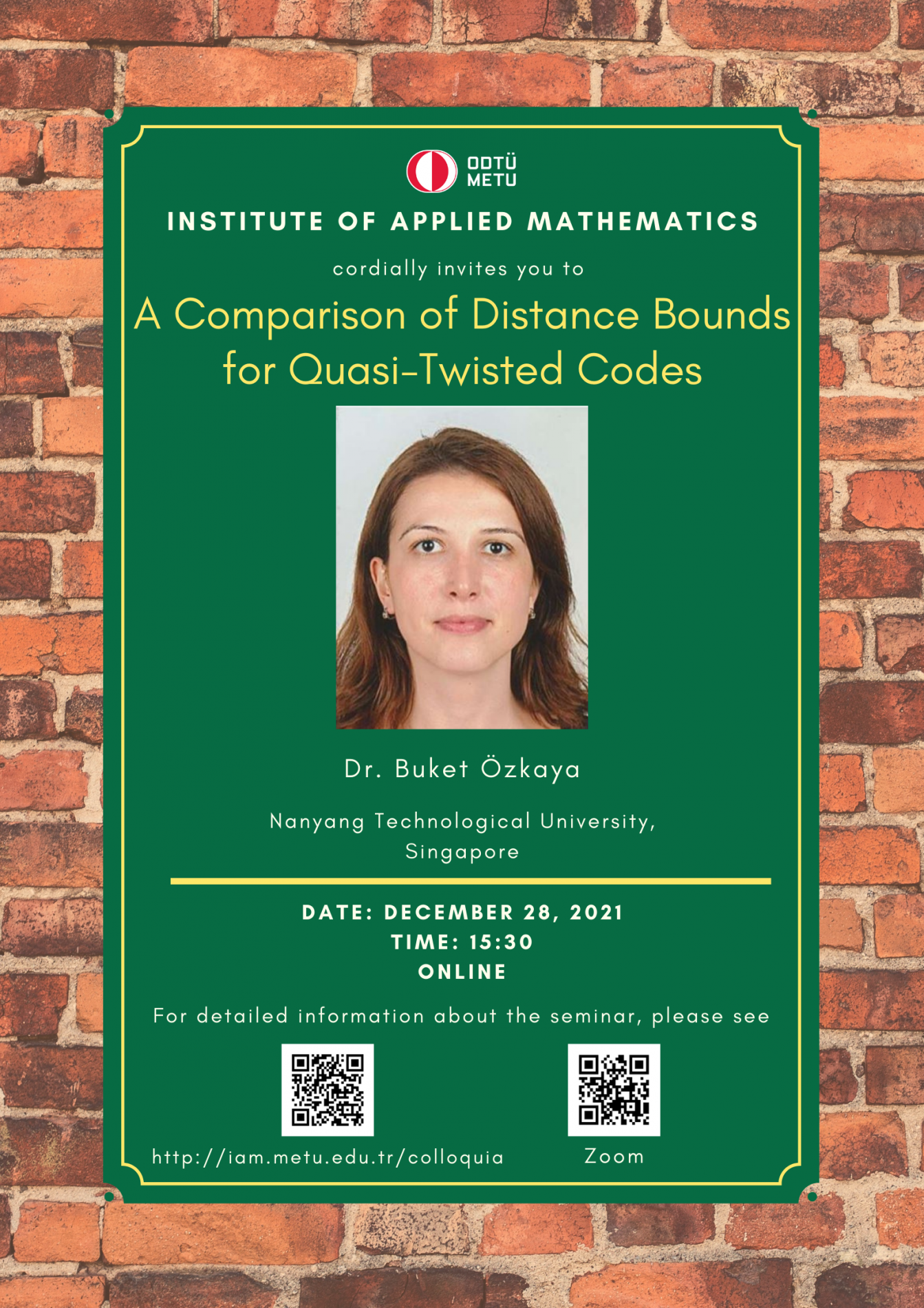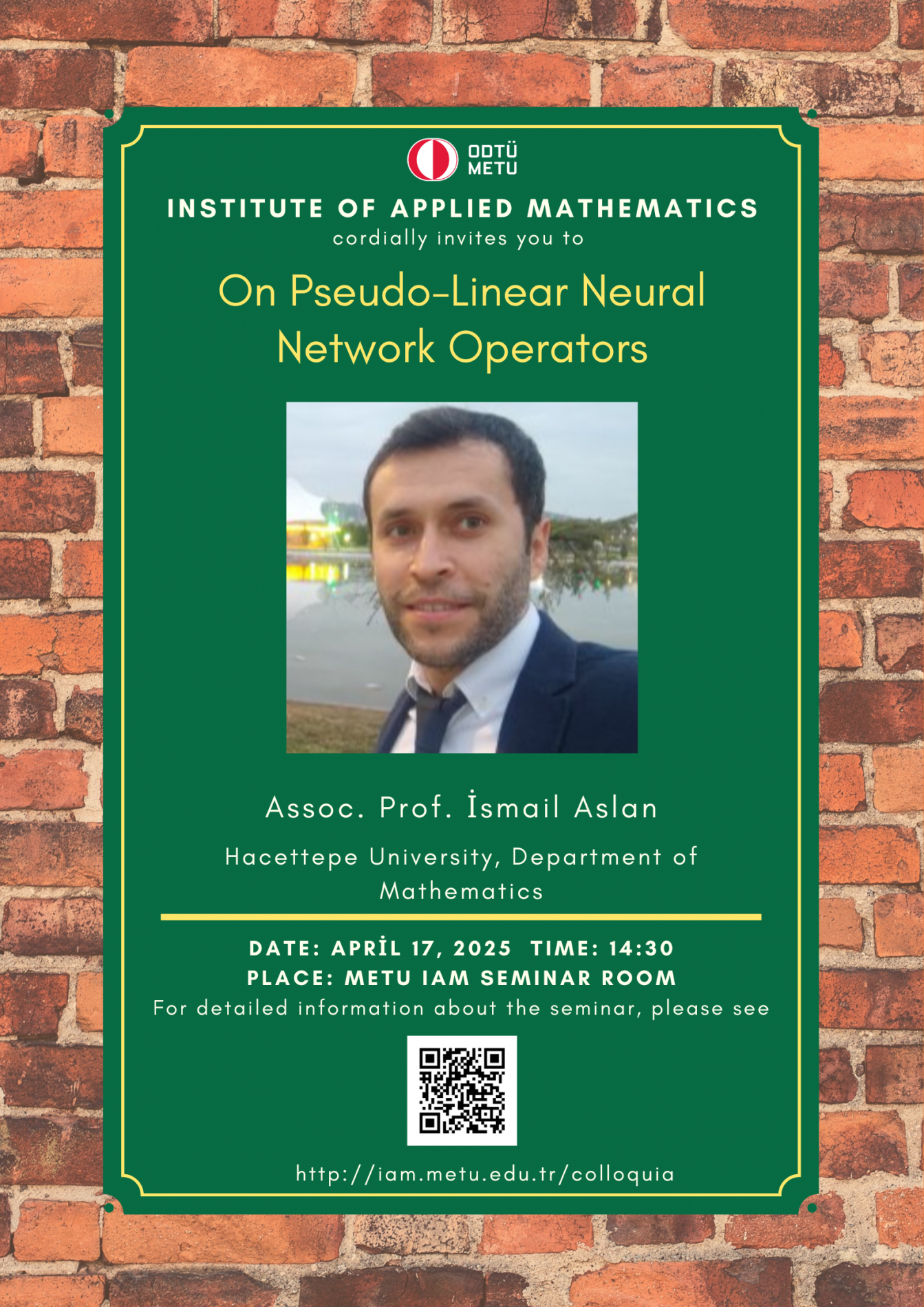 Institute of Applied Mathematics (IAM) is an interdisciplinary centre fostering various researches and teaching activities in mathematical sciences. In order to coordinate mathematics-based research as well as to undertake collaborative research with industry, IAM has established Colloquia (General Seminars), since its foundation in 2002, almost every Tuesdays in the afternoon. A colloquium at the institute usually lasts about 45 minutes.