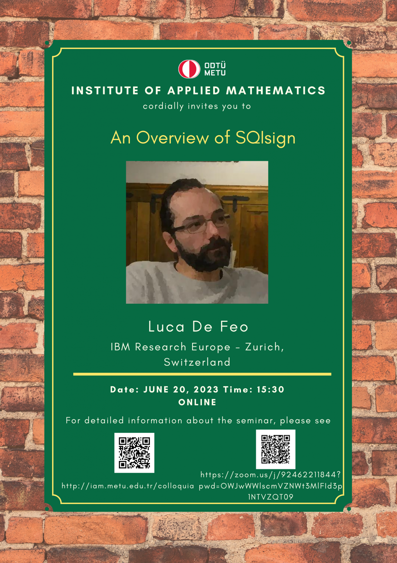 Affiliation: IBM Research Europe Speaker: Luca De Feo Date/Time: 20.06.2023 - 15.30 Abstract: SQIsign is a very compact signature scheme based on isogenies of supersingular elliptic curves. In this talk, I will present the theory behind SQIsign, and the necessary steps to give a complete and efficient implementation. |
